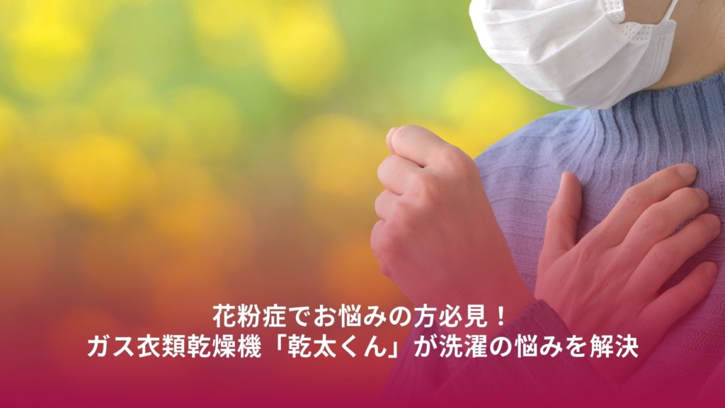 花粉症で洗濯物の外干しに悩んでいませんか?ガス衣類乾燥機「乾太くん」なら外干し不要で花粉・黄砂・PM2.5をシャットアウト。80℃以上の高温乾燥でアレル物質や雑菌、生乾き臭を除去し、スピード乾燥で家事も時短。花粉シーズンを快適に乗り切る最強の洗濯対策を詳しく解説します。 -