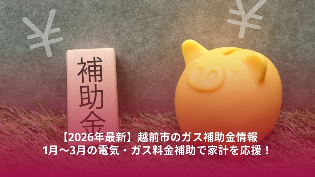 2026年1~3月に実施される電気・ガス料金補助金について、越前市にお住まいの方向けにわかりやすく解説。申請不要で自動値引きされる国の支援内容や補助額の目安、対象世帯の条件、LPガスの注意点に加え、越前市独自の給湯器・省エネ関連補助金情報、冬のガス代節約術までまとめて紹介します。